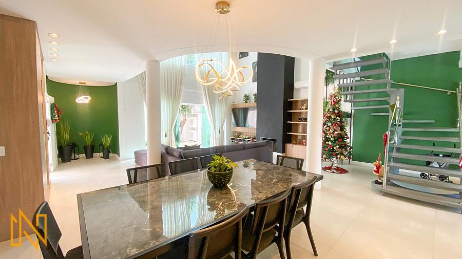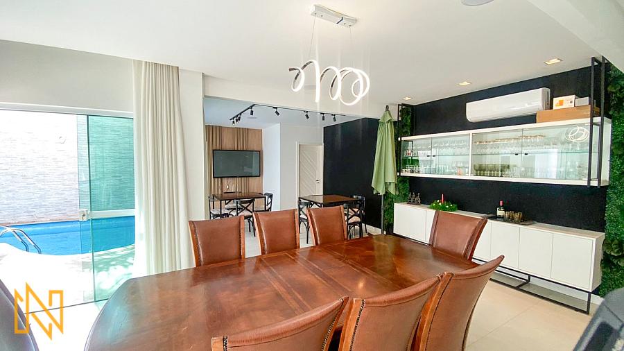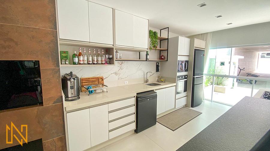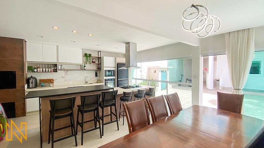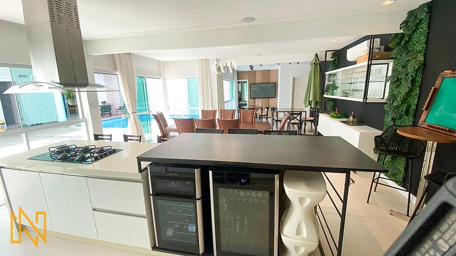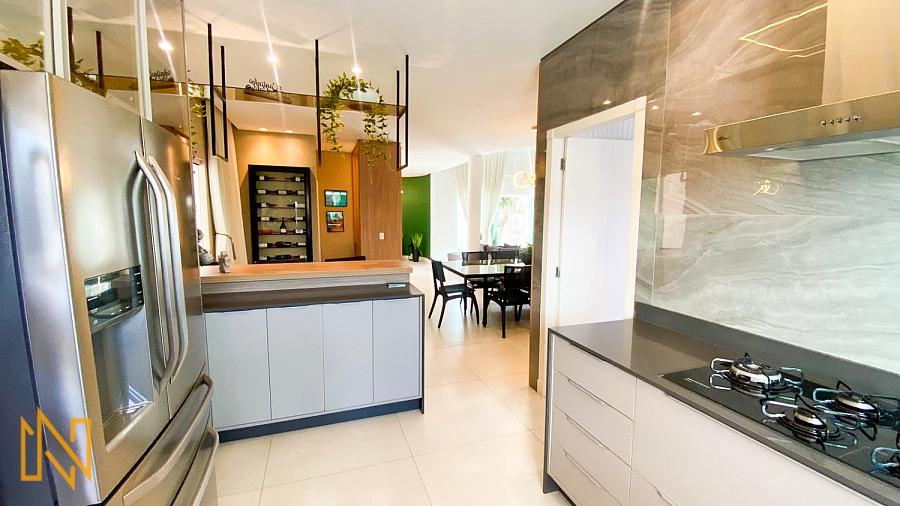 A cozinha, moderna e totalmente equipada, é um convite para experiências gastronômicas memoráveis. Com eletrodomésticos de última geração e uma área de jantar adjacente, a casa é perfeita para receber amigos e familiares.