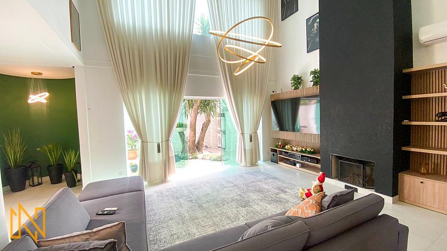 Ao entrar na residência, você é recebido por uma atmosfera acolhedora e uma decoração que destaca a luminosidade e a proximidade com a natureza. A sala de estar, espaçosa e arejada, oferece uma vista deslumbrante para o pequeno jardim que circunda a propriedade, proporcionando uma sensação de paz e tranquilidade.