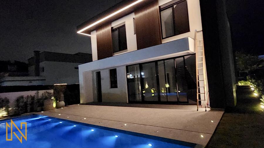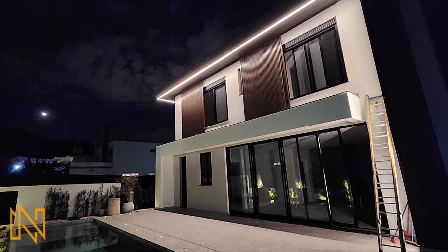 Com quatro suítes, além de um escritório que pode ser facilmente convertido em uma quinta suíte, oferece espaço amplo e versátil para acomodar uma família moderna. São 3 vagas de garagem cobertas e mais 3 descobertas.