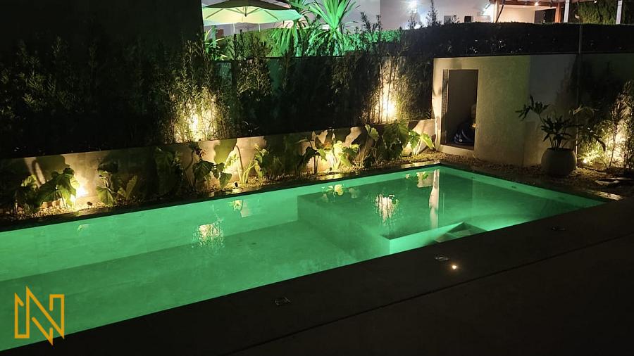 A piscina, com 3m x 11m, proporciona momentos de lazer refrescantes e relaxantes.