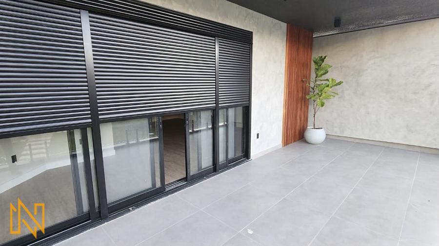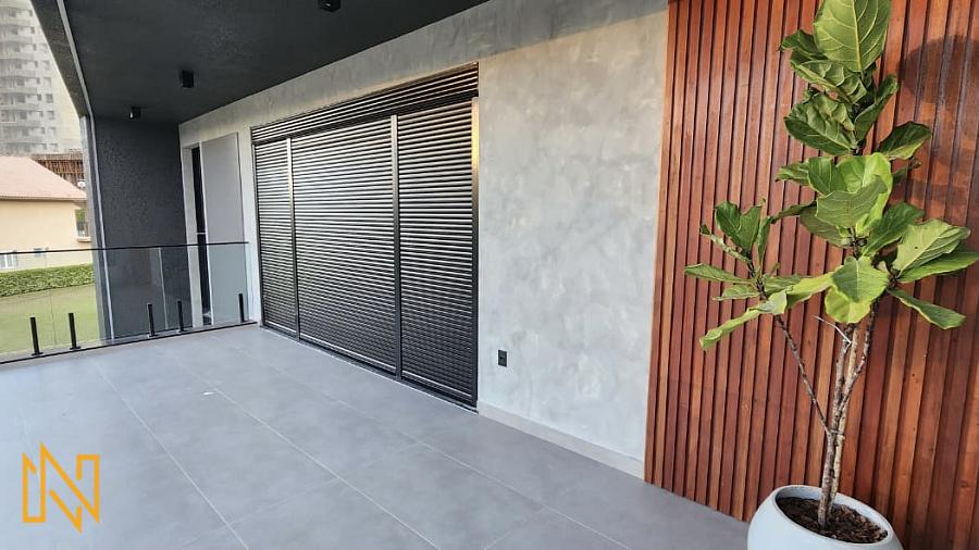 As janelas, equipadas com telas e persianas embutidas e automatizadas, garantem conforto e praticidade.
