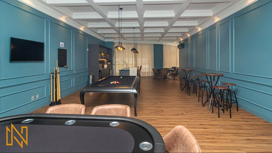 Academia equipada, sala de jogos, brinquedoteca e playground;