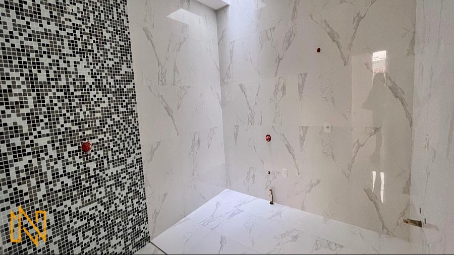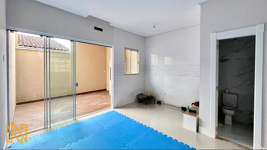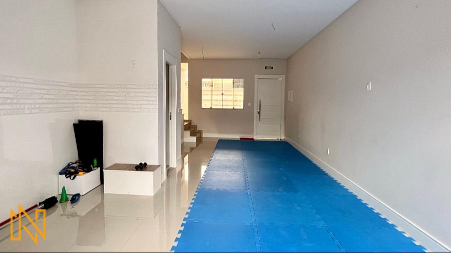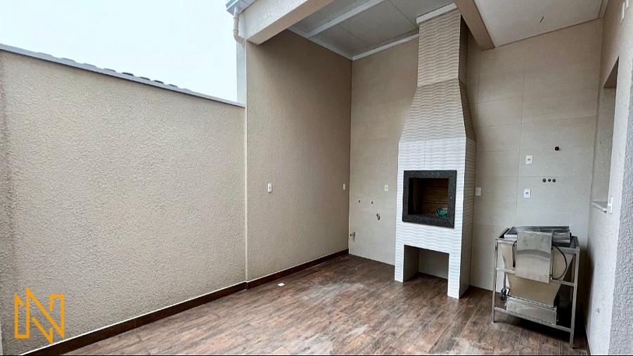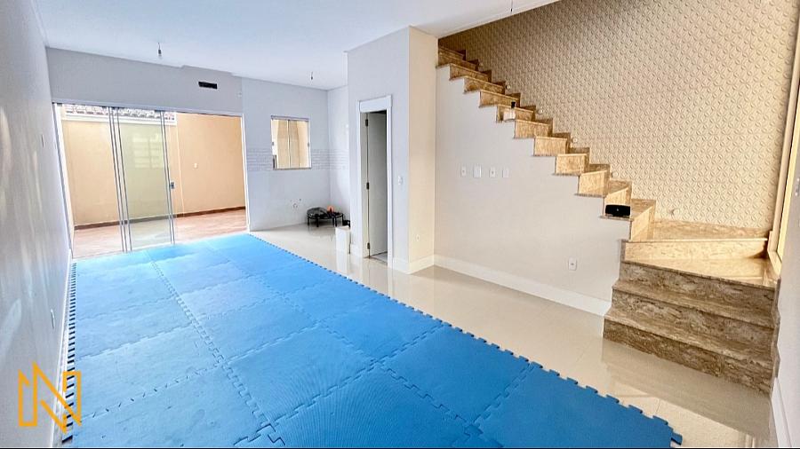 Imóvel residencial, com 2 pavimentos, 190m² de área privativa, com 2 vagas de garagem, na parte inferior possui um amplo living acomodando sala de estar e sala de jantar, lavabo, cozinha americana e varanda gourmet com churrasqueira a carvão, na parte superior possui 3 suítes sendo uma master com espera para hidro e janela em reicke, possui uma infraestrutura completa com infra para ar condicionado em todos os cômodos, espera para aquecedor a gás e pressurizador, portão eletronico, acabamento com piso porcelanato e portas em Laca branca.