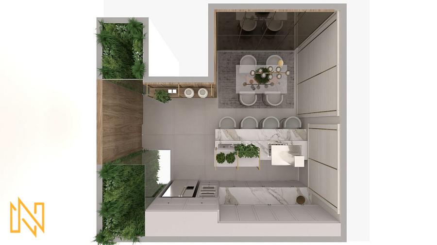 A modernidade se faz presente na automação completa para o sistema Alexia, enquanto a área de serviço, o jardim de inverno e duas churrasqueiras (uma a carvão e outra a gás) oferecem praticidade e momentos de descontração.